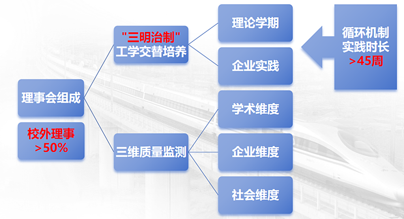 未来方向:深化“人工智能+轨道交通”融合,重点开展轨道交通智能运维科研和人才培养;探索“应用型本科+职业本科”融通,构建“应用能力+职业能力”双轨评价体系;扩大国际合作,打通与东南亚和中亚高校的合作渠道,打造“一带一路”轨道交通人才培养高地。
