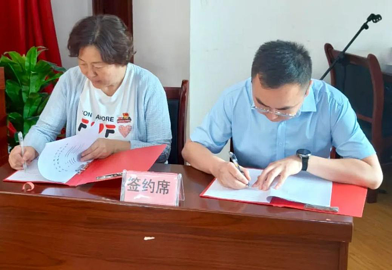 校党委书记李萍与共青团城固县委书记朱晶辉签署共建“暑期社会实践基地”合作协议