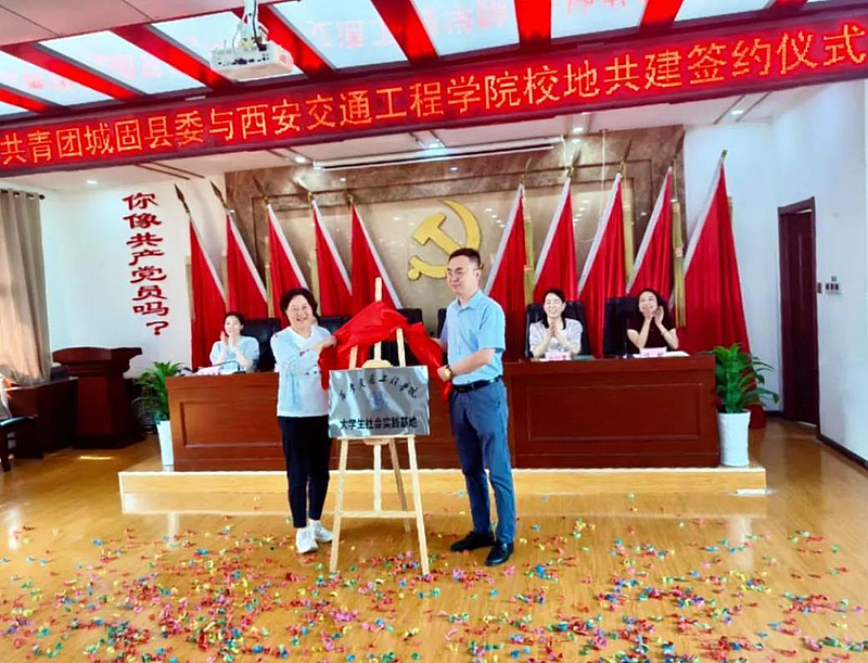 校党委书记李萍与共青团城固县委书记朱晶辉共同揭牌