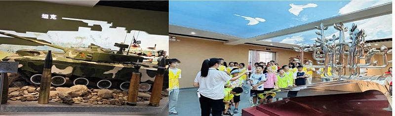 从国防科技发展历程的图文长廊,到按比例还原的战机、坦克、舰艇等装备模型,再到融入前沿科技的互动体验装置,每一处都吸引着孩子们的目光。实践队队员化身“小小讲解员”,用童趣化的语言讲解国防装备的功能、国防科技的重要性。