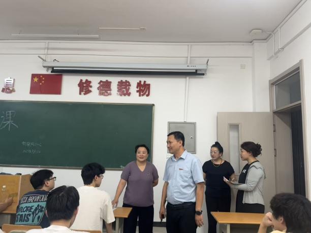 新学期的序章悄然拉开,为确保开学教学秩序稳健运行,精准洞悉学生思想动态与学习诉求,助力学子迅速告别假期松弛状态、明晰成长航向,8月31日晚,副校长王勇、学生处处长胡省利带领学生处全体成员,深入各学院“开学第一课”主题班会现场,开展专项检查与指导工作。