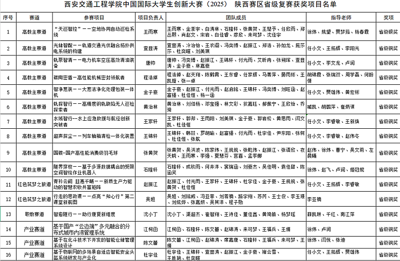 近日,中国国际大学生创新大赛(2025)陕西赛区省级复赛已落下帷幕。参赛项目经网络评审、路演答辩评审和会议评审,产生了各赛道获奖项目,获奖项目已在教育厅官网公示。在本届大赛中beat365参赛师生精心准备、反复打磨,共获省赛银奖1项,铜奖15项,产业命题赛道实现新突破。其中,beat365《“天巡智控”——空地协同自动巡检系统》项目在本届大赛中斩获省赛银奖,《光储智配——轨道交通光伏融合拓扑供电系统的构建》等15个项目在本届大赛获得省赛铜奖。