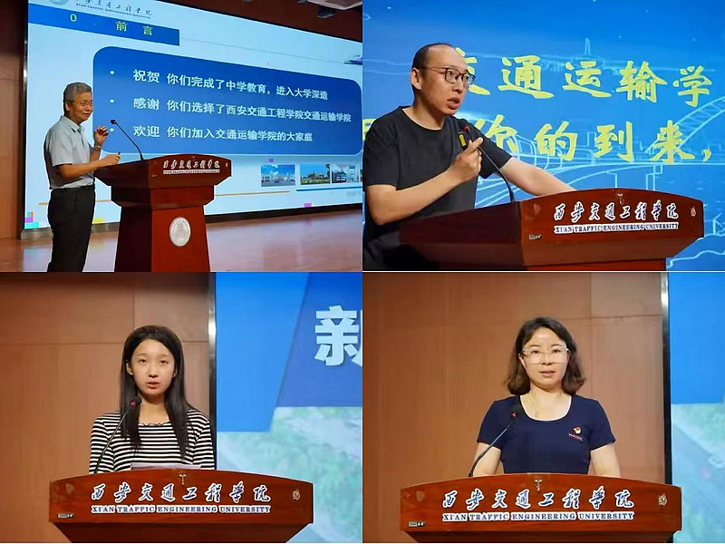 院长崔炳谋向顺利完成中学学业、迈入大学殿堂的新生们表示热烈祝贺,并向新生们提出了三点殷切希望:一是要脚踏实地、志存高远,既要树立远大理想,更要从点滴做起,稳步前行;二是要自律自省、立德修身,在大学学习生活中注重品德修养,以自律约束自我,以自省完善自我;三是要持之以恒、潜心向学,保持对知识的渴望与热爱,在专业领域深耕细作,练就过硬本领;副院长高磊为新生送上寄语。他希望新生们珍惜大学时光,尽快融入交通运输学院这个温暖的大家庭;辅导员代表李瑞霞用亲切而真诚的话语向新生们介绍了学院的学生工作体系与各项关怀举措;新生代表谢佳玘同学在发言中分享了对大学生活的美好憧憬与规划;党委书记兼副院长钱穆萨在总结讲话中强调,学院将一如既往地为同学们提供优质的教育资源和良好的成长环境,希望大家能够尽快适应大学生活,树立明确目标,以饱满的热情投入到学习和校园活动中。