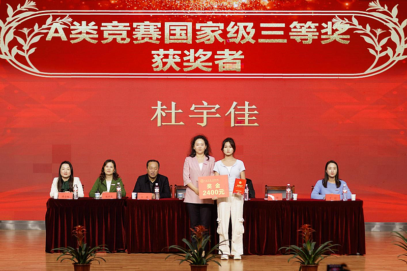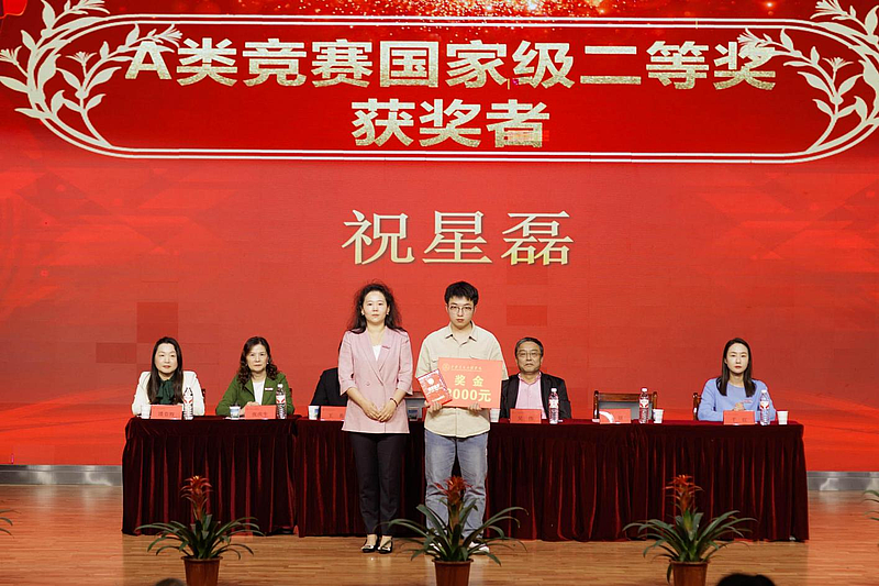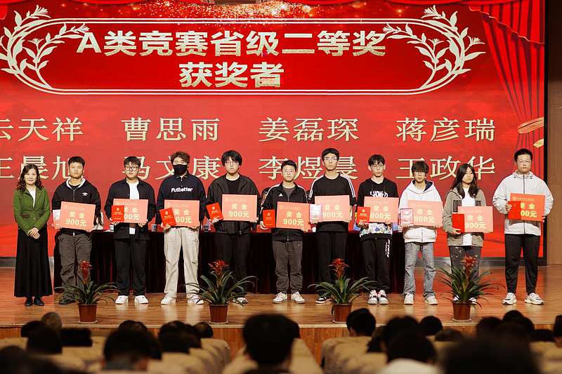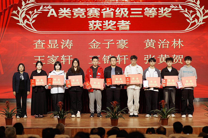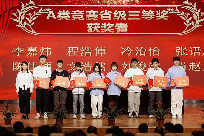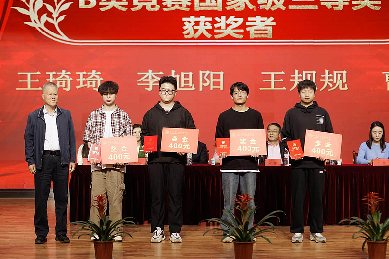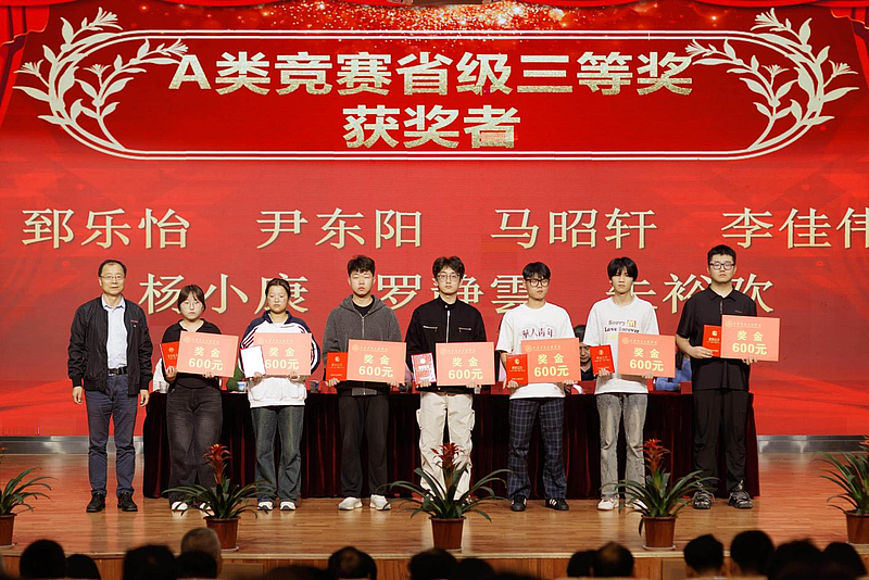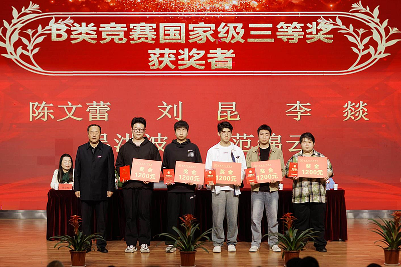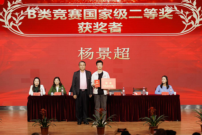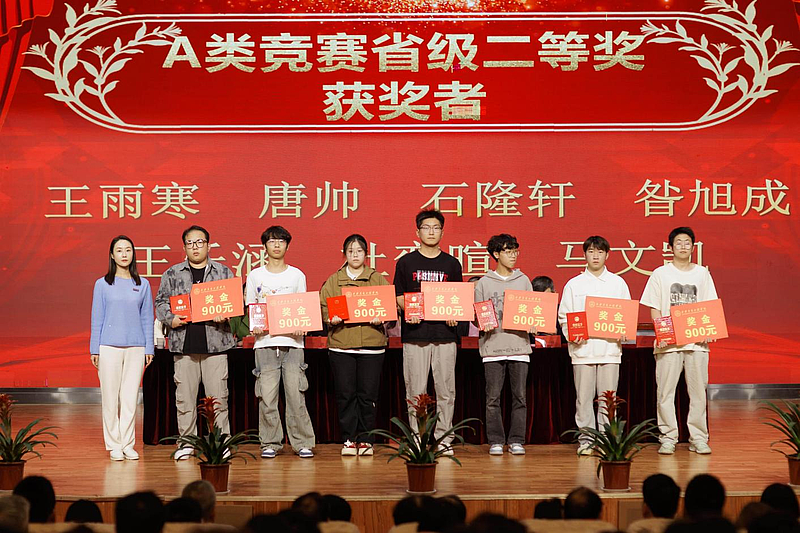 校院两级领导依次为国家级、省部级获奖学生代表颁奖。手中沉甸甸的证书与奖牌,不仅是对学生过往努力付出的充分肯定,更是对他们未来在创新探索道路上继续前行的殷切期许,现场氛围庄重而热烈。