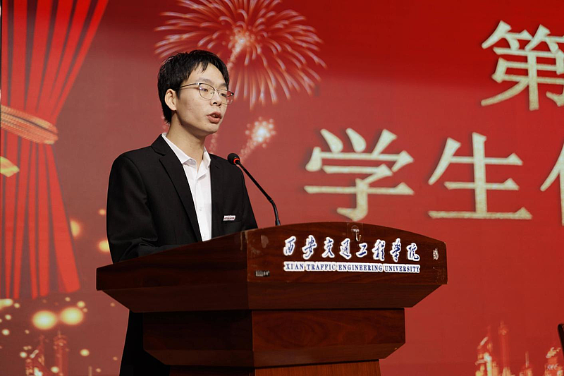 “学科竞赛不是一个人的战斗,而是学校支持、师长指引与团队协作的共同磨炼。” 机械与电气工程学院赵振江同学作为学生代表,分享了自己的参赛经历与成长感悟。赵振江细数着成长路上学校与老师给予的 “助力”,近三年其团队依托学科竞赛积累的经验与技能,斩获省级及以上荣誉 69 项,获批国家级大创项目 6 项、专利 8 项。他深刻体会到 “竞赛是打开实践能力的钥匙”,并呼吁更多同学走进学科竞赛,在实干中锤炼本领,以交院人的严谨与热爱为学校争光、为交通行业添彩。