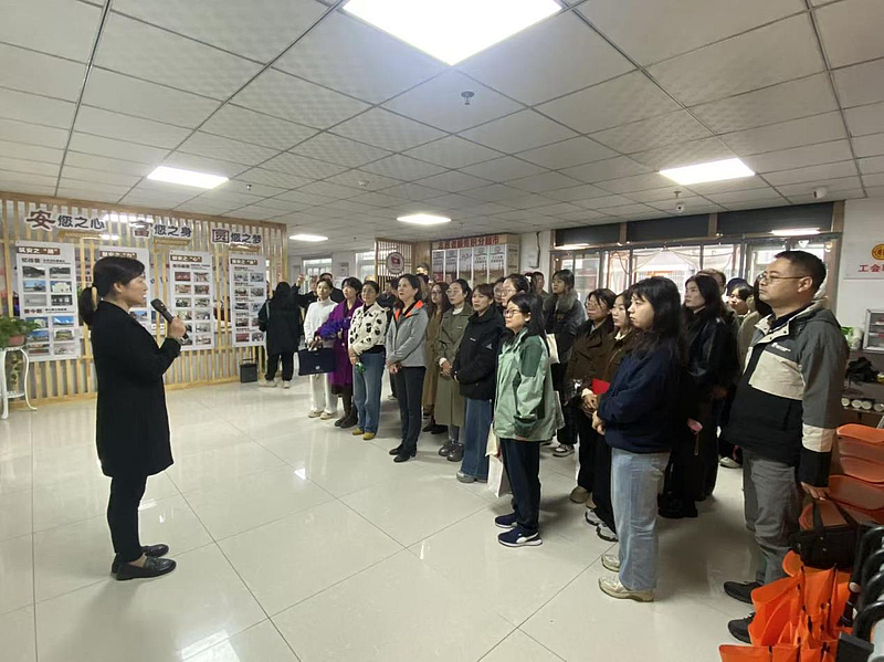 出发途中,张庆生主席向教职工们详细介绍了本次参观的意义、具体流程及注意事项。她语气温和且关切,鉴于近期雨水较多且气温骤降,特别提醒大家注意防寒保暖,行走时小心脚下安全让大家在微凉的天气中感受到了阵阵暖意。
