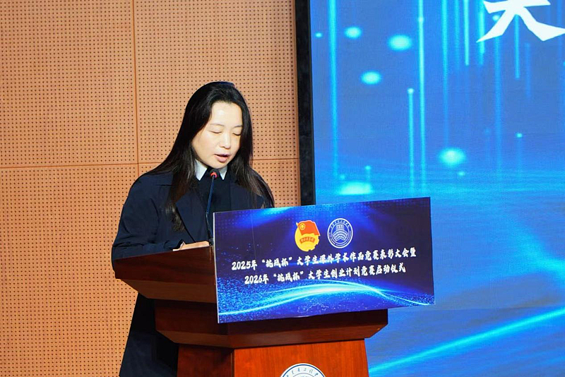 副校长吴伟在讲话中向在2025年“挑战杯”竞赛中取得优异成绩的师生表示祝贺,并强调了“挑战杯”竞赛在培养学生创新精神、创业意识及实践能力方面的重要作用。他对新一届“挑战杯”创业计划竞赛提出了殷切期望,鼓励全校师生积极投身创新创业实践,以赛促学、以赛促创,不断提升人才培养质量,服务国家创新发展。