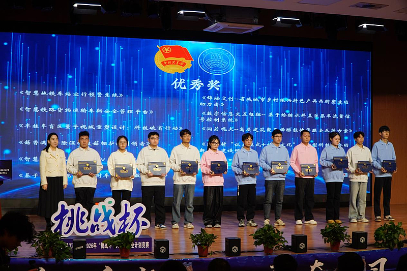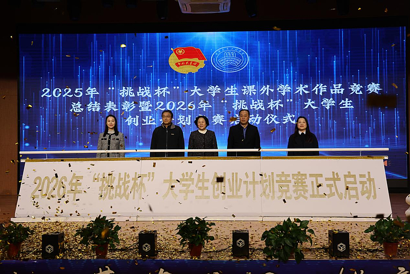 在全体与会人员的热切期待中,校领导共同启动了2026年大学生创业计划竞赛,标志着新一届“挑战杯”征程正式启航。