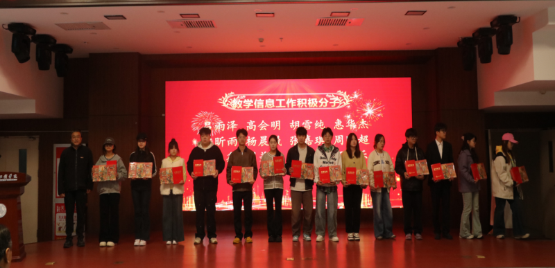副校长王勇宣读了《关于表彰2024-2025学年优秀学生教学信息员及教学信息工作积极分子的决定》。与会领导为获奖学生颁发了荣誉证书和奖品。