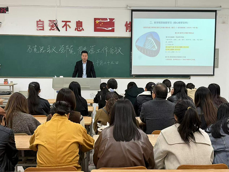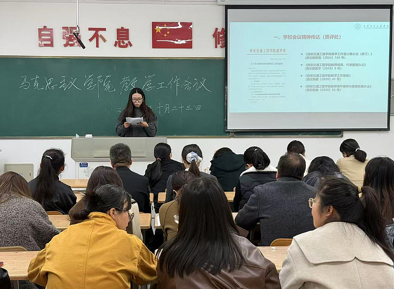 会议第一项,李艳院长详细传达了学校教学质量监控与评估处近期召开的专题会议精神,重点围绕《关于落实师资核查问题整改工作的通知》(西交院质函〔2025〕42 号)文件要求进行了详细解读与部署。她指出,核查反馈既肯定了学院在师资队伍建设方面取得的阶段性成效,也中肯地指出了在教学管理与运行环节的规范性、教师评学工作的实效性、新进教师岗前培训的系统性与深度等方面,仍存在着力改进与优化的空间。她强调,全体教师必须从思想上高度重视此次整改工作,深刻认识到规范教学管理、夯实各级责任对于提升学院整体办学水平与人才培养质量的基础性、关键性作用。她要求,各教研室及全体教师务必坚持问题导向,对照反馈意见逐条梳理,制定切实可行的整改方案,明确时间表与责任人,确保各项整改措施落到实处、见到实效,形成长效机制,以彻底的整改成效推动学院各项教学工作。