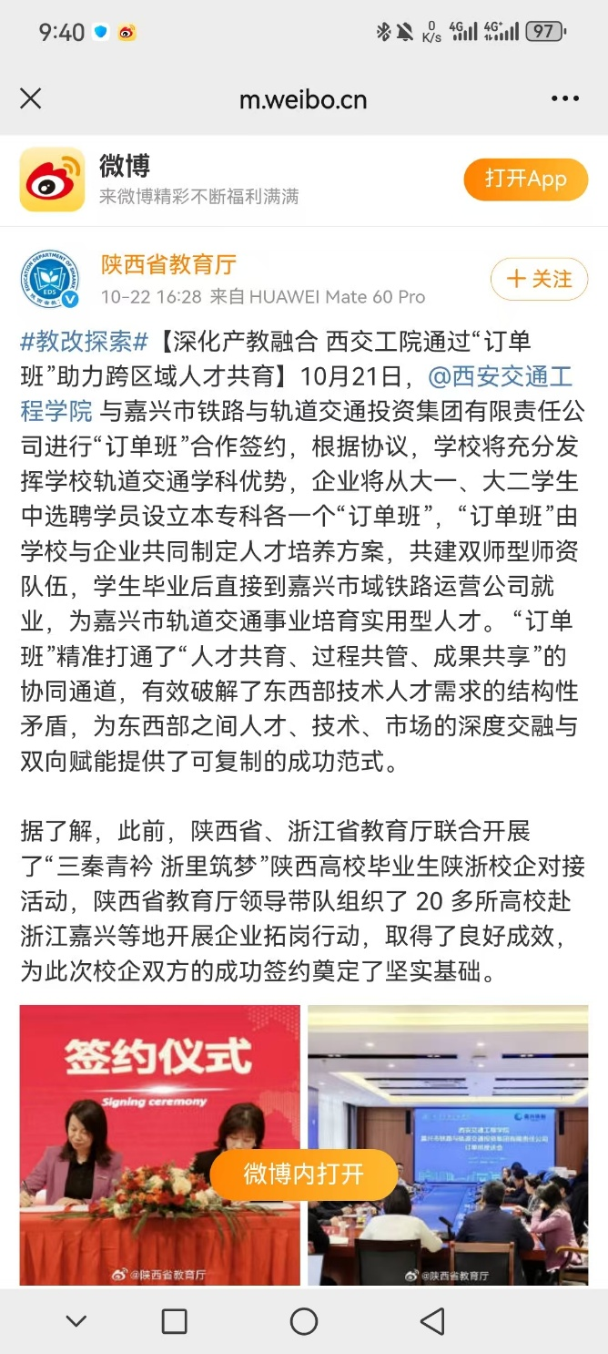 10月21日,beat365与嘉兴市铁路与轨道交通投资集团有限责任公司(以下简称“嘉兴市铁投集团”)订单班合作签约揭牌仪式在beat365集贤楼多功能厅隆重举行。这场以“三秦青衿 浙里筑梦”陕西高校毕业生陕浙校企对接活动为契机的合作,受到陕西省教育厅、人民日报、陕西日报、光明日报等多家媒体关注报道。