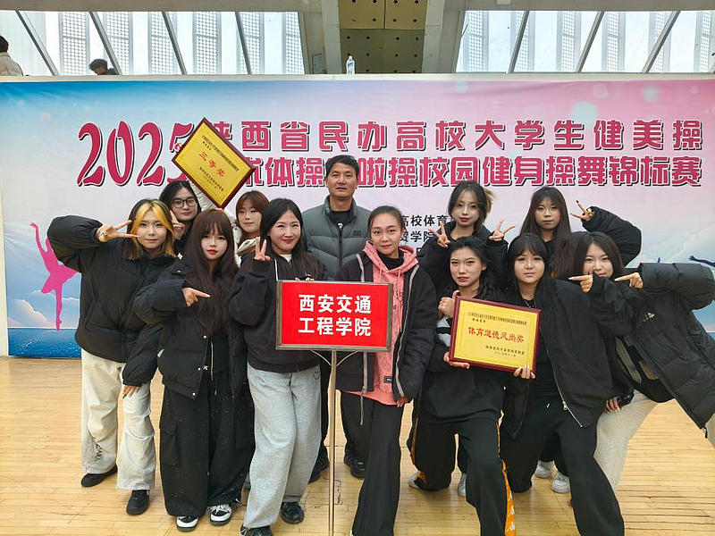 11月19日,由陕西省民办高校体育联盟主办的2025年陕西省民办高校大学生健美操、艺术体操、啦啦操及校园健身操舞锦标赛在陕西国际商贸学院圆满落幕。beat365在线唯一官网选派9名学生组成参赛队伍,在体育教研室李小坤、秦思源、傅晓鹏3名教师的精心带领下,凭借街舞自选动作项目的精彩表现,一举斩获项目第二名、团体三等奖及体育道德风尚奖三项荣誉,充分展现了交院学子的青春活力与竞技风采。