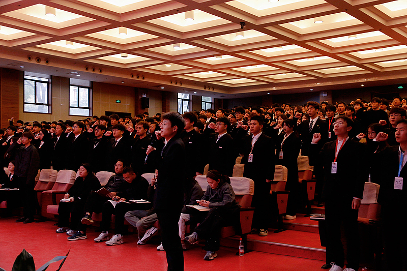 在庄严的宣誓环节,学生干部代表翟怡轩带领全体与会学生骨干郑重宣誓,表达了为学校迎评工作贡献力量的坚定决心。铿锵有力的誓言展现了学生骨干昂扬的精神面貌和团结奋进的信念。