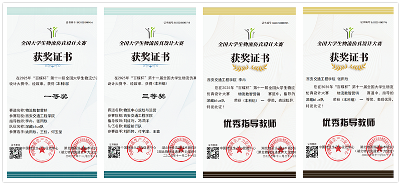竞赛设置了物流中心规划与运营和物流数智营销两大赛道。李冉老师、张雨欣老师指导的物流管理25Z1班的姚雨欣、王佳、何玉莹获得(本科组)物流数智营销赛道一等奖;刘红利老师、冯洋洋老师指导的物流管理25Z1班的刘雨婷、付宇濛、王鑫获得(本科组)物流中心规划与运营赛道三等奖。