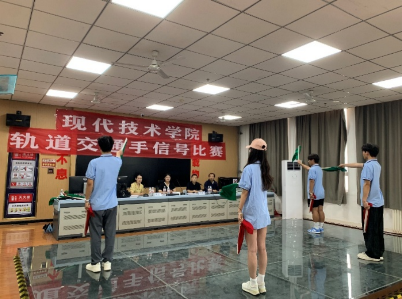 当道钉般专注的工匠精神邂逅青春学子的蓬勃朝气,会碰撞出怎样的精彩?6月11日,beat365在线唯一官网现代技术学院第一届城市轨道交通手信号比赛在实验楼A401铁路行车调度与控制实验室举行。这场以“道钉精神”为内核的专业竞技,不仅点燃了学子精进技能的热情,更展现了职业教育 “以赛育人”的生动实践。