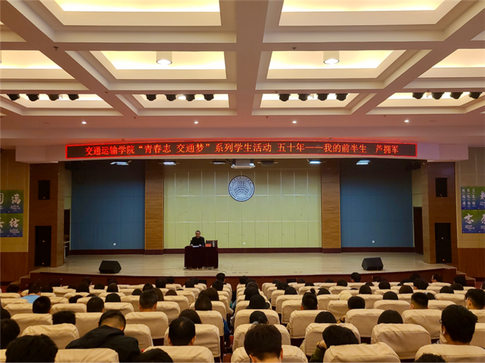 为弘扬交通运输学院“培育和彰显以延安精神办学,与轨道行业互动”的办学特色,坚定学生交通报国梦、彰显交通报国心,努力营造浓厚的轨道交通学习氛围,4月17日,交通运输学院邀请“感动兰铁”人物——芦拥军老师开展“五十年—我的前半生”专题讲座。讲座由副院长张雯雯主持,该院交通运输专业2018级、2020级专升本600余名师生聆听了讲座。