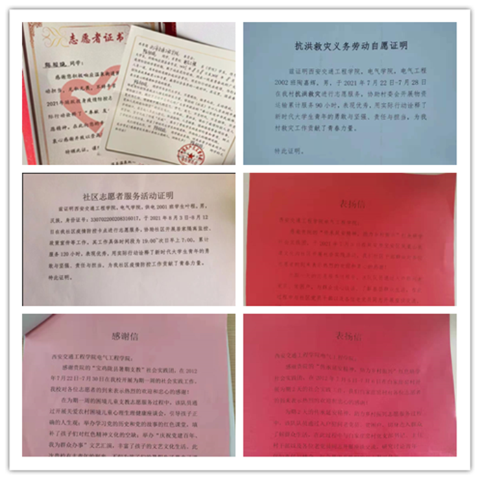 电气工程2002班陶嘉辉,家乡位于陕西省商洛市洛南县,暑期受灾严重,作为一名有责任的青年大学生,该生毫不犹豫的加入了志愿救灾的工作中,在为期五天的服务中,学生认真听取抗洪救灾指挥部安排,哪里需要哪里去,积极参与贡献自己的力量。用行动诠释了当代大学生的勇敢、坚强、责任、担当。