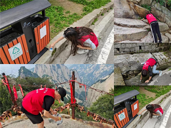 ——重走革命之路,弘扬革命精神。7月6日,志愿者们前往华山景区开展“保护生态环境,建设美丽华山”环保志愿活动。大家沿着英雄先烈曾经走过的智取华山路开始攀登,现在在悬崖峭壁上修建的“智取华山路”,是以当年解放华山八勇士们经过的原路为路线,全长2公里左右,约4000级台阶,历时两小时,全体志愿者走完了全程并清理沿路垃圾杂物,一路陡峭的山路,全体志愿者不畏困难,感受到当年革命先辈们奋不顾身的坚强意志,追溯红色革命记忆,感悟红色革命艰辛,受到游客和景区工作人员的一致好评。