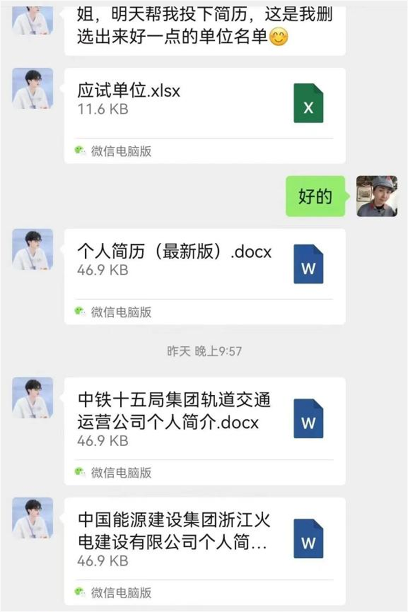 由于大部分学生外出实习不在学校。学院领导老师们也是绞尽脑汁,为学生争取机会,不放过任何一个可以求职的机会。根据学院安排3月16日晚辅导员就开始收取简历、帮忙打印简历、线上和学生保持沟通、线下和就业单位沟通,做好笔记,留好单位的联系方式,为学生争取线上面试的机会,得到了单位的极大认可。