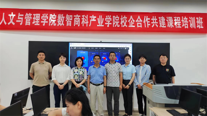 为加强教师队伍建设,培养一支高素质的师资团队,帮助新教师加深对新场景、新业务以及数智企业岗位技能的了解,更快提高业务能力和专业技能,将行业前沿新技术融入教学,加快课程教学适应数智化新趋势,8月23日,人文与管理学院数智商科产业学院举办了校企合作共建课程培训开班仪式。人文与管理学院院长赵德利、数智商科产业学院副院长王欣、财务管理教研室主任李海翔、齐欢欢及财务管理和电子商务任课教师参加了培训仪式。新道科技股份有限公司尼释元、张鹏、涂康、吴活波等企业代表进行培训指导。