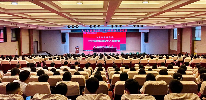 9月9日,人文与管理学院在学术报告厅举行2023级新生入学教育。院长赵德利、副院长白云、郝柯羡、各教研室主任、专业负责人共同迎接来自祖国四面八方的1000余名新同学。入学教育由党委书记兼副院长李沙沙主持。