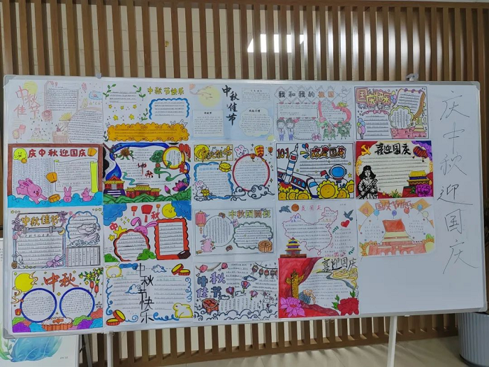 ——开展中秋、国庆主题手抄报活动。活动中同学们充分发挥特长,以图状景,以文载情,将爱国主题巧妙地融入作品中。一幅幅手抄报作品主题鲜明,内容充实,构思新颖,画面美观,色彩鲜艳,书写规范。不仅增强了学生对中国传统节日的了解,弘扬优秀传统文化,还激发了广大学生的爱国热情。