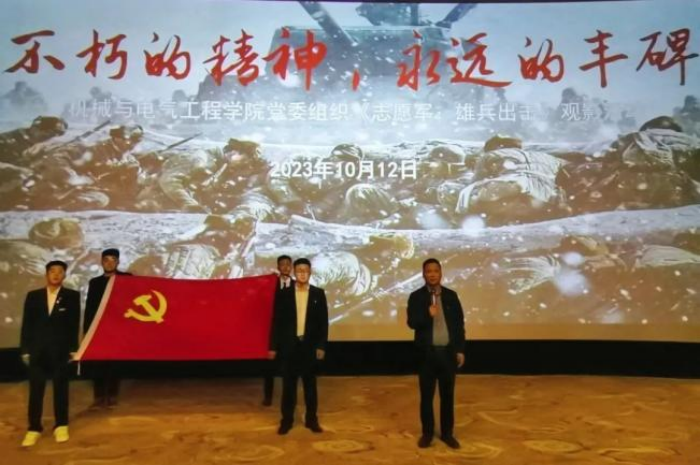 为纪念抗美援朝战争胜利70周年,激励广大青年党员传承“抗美援朝”精神,扎实推进主题教育,激发党员干部爱党爱国情怀,10月12日,机械与电气工程学院党委组织开展“不朽的精神,永远的丰碑”红色观影主题党日活动。