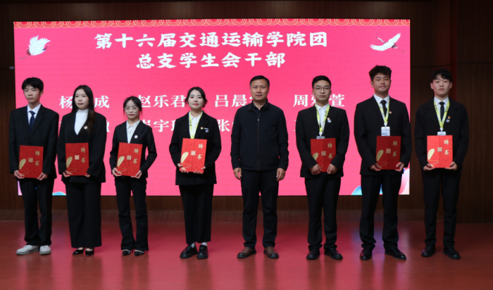 随后院长崔炳谋为第十六届团总支学生会主席团颁发聘书,党委书记胡省利、团总支书记秦鑫为第十七届团总支学生会学生干部颁发聘书,肖茹峰老师、郝志超老师为先进工作者颁发证书。这既是对老成员的鼓励,更是对新成员的激励,推动交通运输学院团总支学生会工作更上一层楼。
