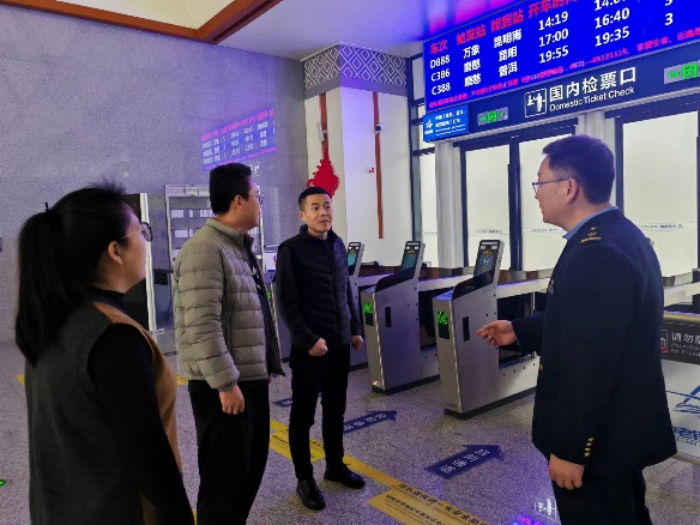 30日清晨,一行人来到磨憨站。作为中老边境的重要一站,磨憨站承担着出入境旅客的运输任务,是泛亚铁路中线上的一座桥梁,是我国通往老挝最大的国家级铁路口岸,也是通向东南亚国家最便捷的陆路通道之一。陈昊宇副站长详细地介绍了磨憨站区平面图,带领大家参观了旅客从磨憨站出入境流线。并详细介绍了车站设备配置和运营情况。