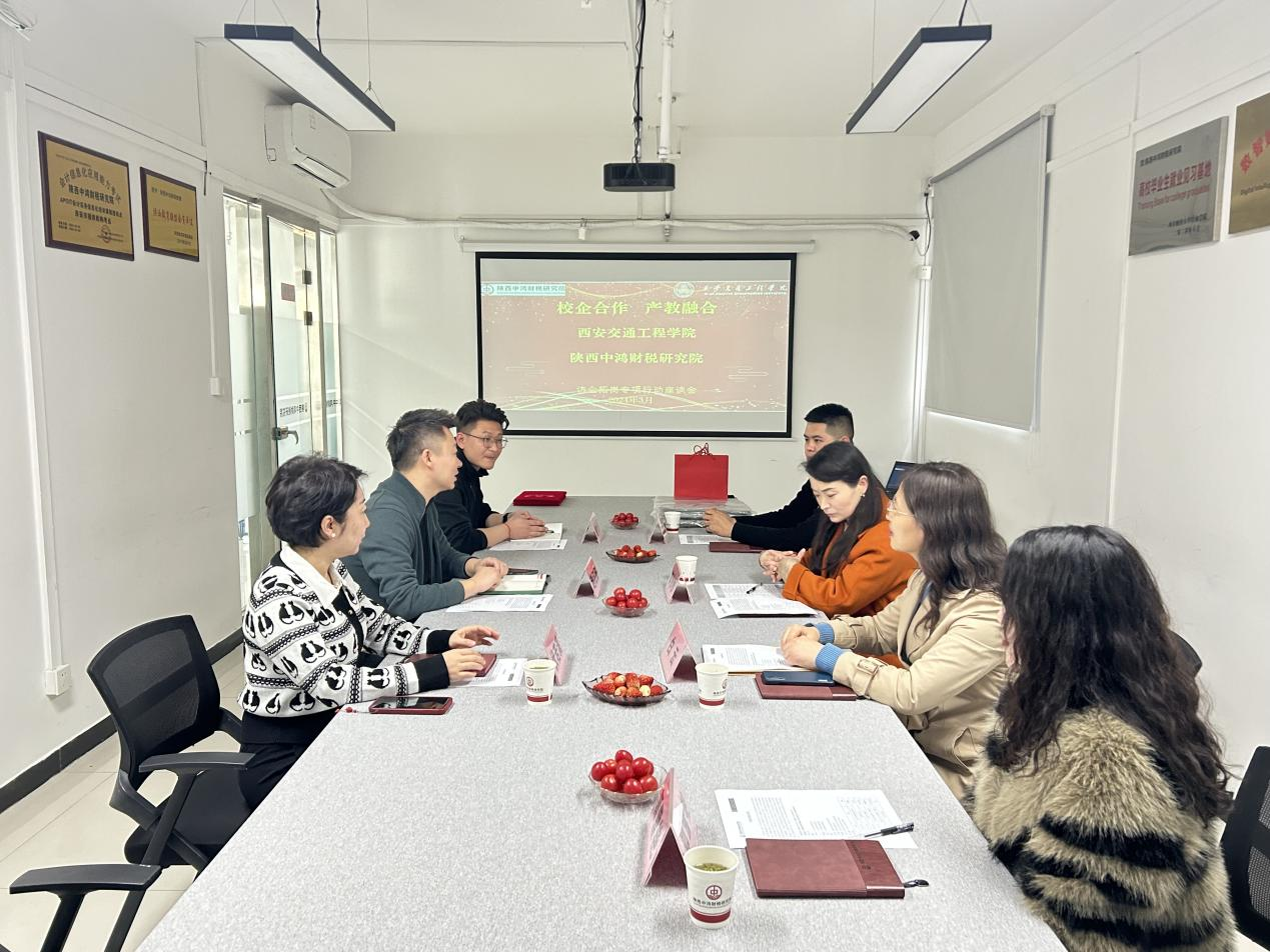 3月13日下午,人文与管理学院党委书记兼副院长李沙沙、副院长白云、毕业班辅导员郭雪燕、王顺一行前往陕西中鸿财税研究院有限公司,与陕西中鸿财税研究院有限公司赵江波、市场部经理罗超鹏;瑞友集团有限公司伏若溪两家单位针对财务管理专业的学生实习和就业进行了洽谈,达成了一致并签订了实践教学和校企合作协议。