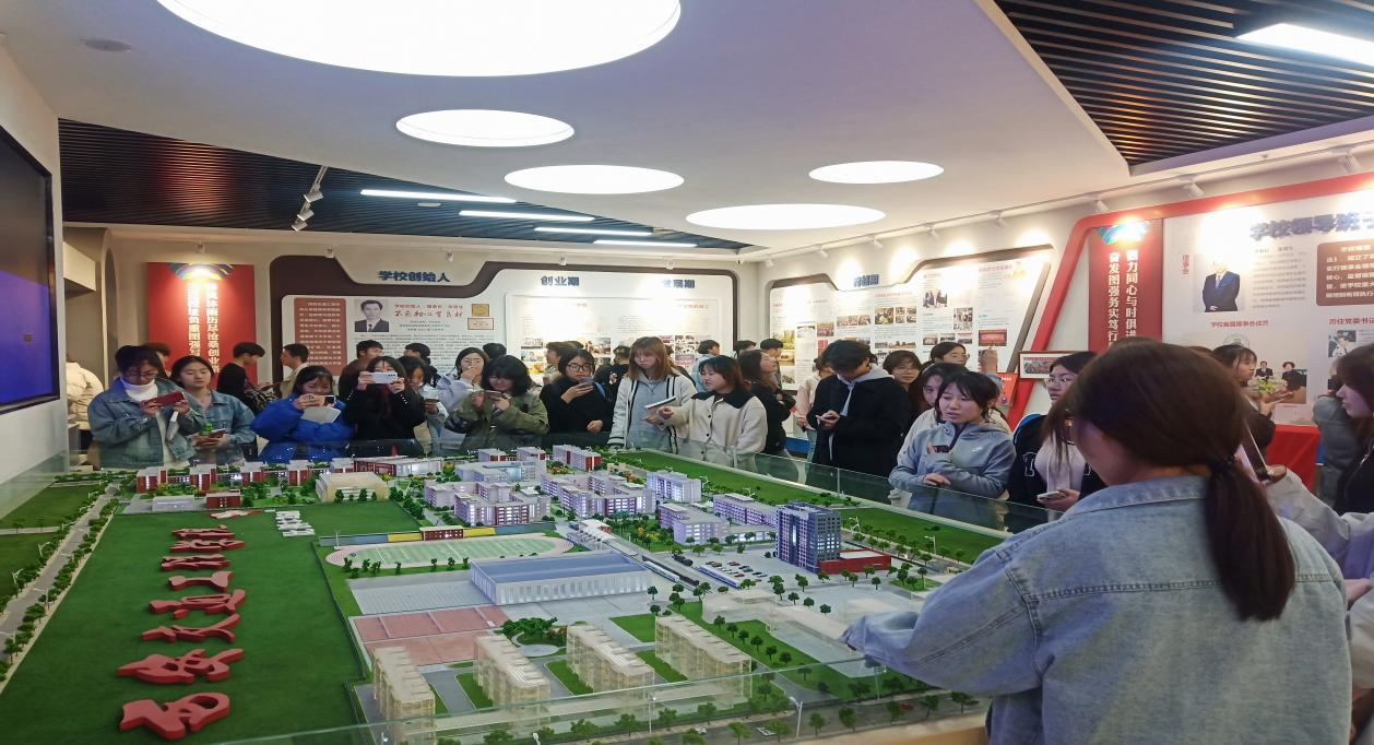 师生参观校史馆沙盘