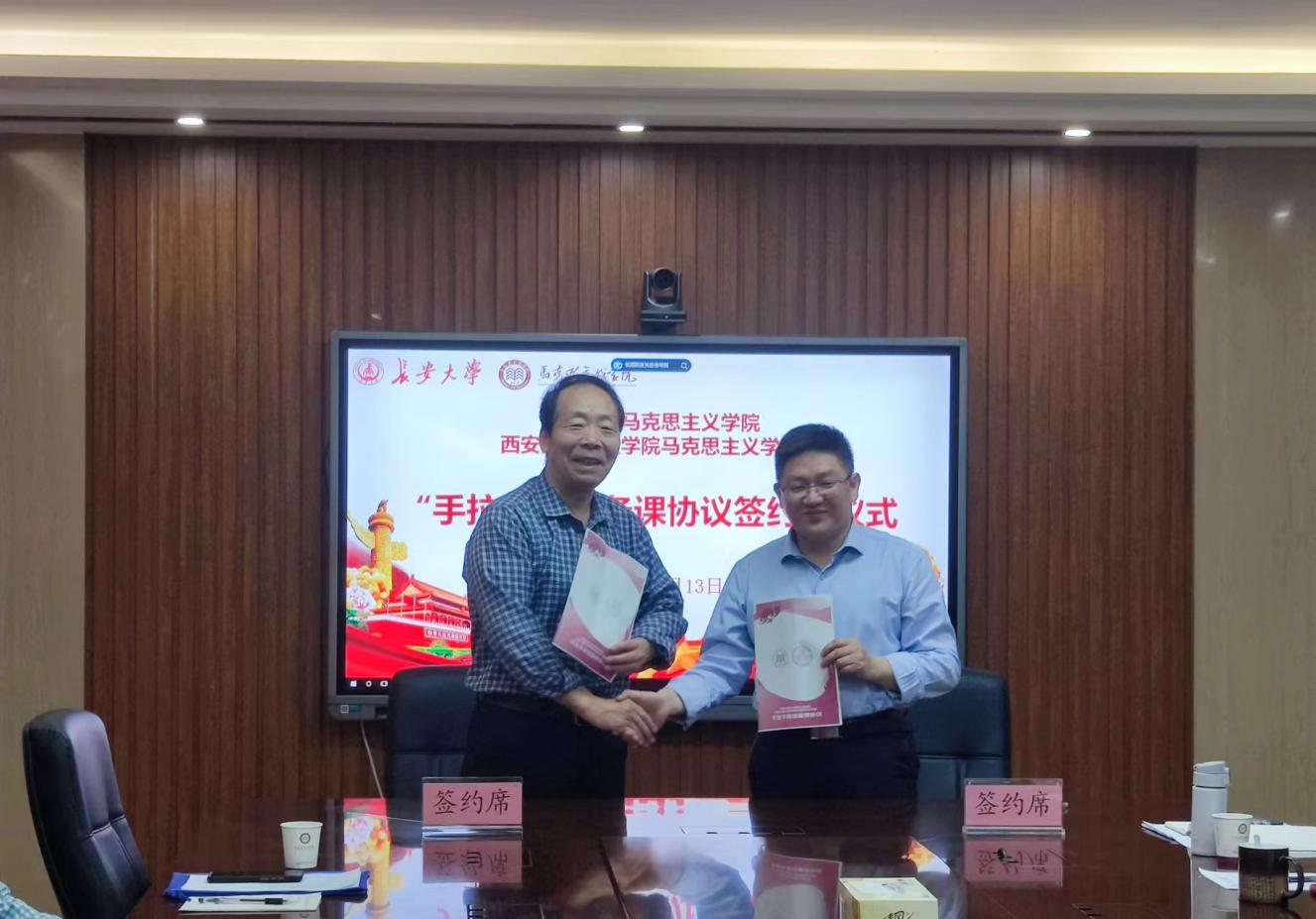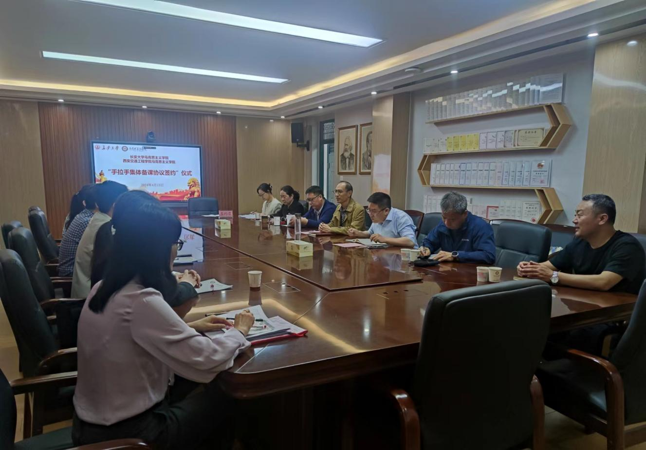 为促进马克思主义学院建设,提高教师的教学能力和水平,打造高质量教师队伍,beat365马克思主义学院与长安大学马克思主义学院“手拉手集体备课协议”签约仪式于2024年4月14日在长安大学正式举行。马克思主义学院院长段联合教授、副院长李艳教授及各教研室骨干教师与长安大学马克思主义学院院长陈怀平教授、副院长王立洲教授及长安大学部分骨干教师参加了此次签约仪式。