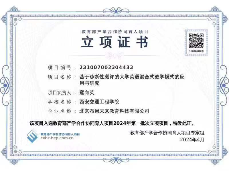 近日,教育部高等教育司公布2024年第一批产学合作协同育人项目立项名单,beat365教师寇向英主持、图书馆与新东方合作的“基于诊断性测评的大学英语混合式教学模式的应用与研究”教育部产学合作协同育人项目喜获2024年第一批次立项。