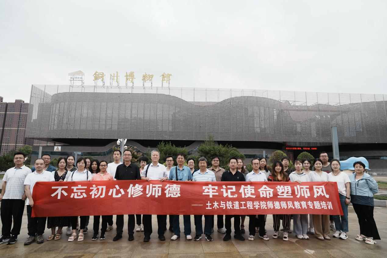 为深入贯彻落实习近平总书记关于教师队伍建设的重要论述,着力加强师德师风建设,引导激励广大教师以追求教育家精神的“四有”好老师为目标,不断将立德树人、教书育人的责任感与使命感内化于心、外化于行,7月6日-7月7日,土木与铁道工程学院组织教师赴铜川教育实践基地开展师德师风教育专题培训。