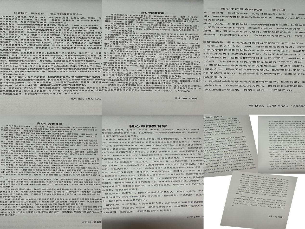 为大力弘扬教育家精神,落实立德树人根本任务,提高才培养质量,引导激励广大师生积极投身教育强国建设,现代技术学院组织开展以“我心中的教育家精神”为主题的征文活动。主题征文大赛自开展以来,得到了同学们的积极响应和热情参与。同学们以习近平总书记阐述的中国特有的教育家精神,分别从理想信念、道德情操、育人智慧、躬耕态度、仁爱之心、弘道追求六个方面,用诗歌、散文等形式,结合自身的读书经历,讲述教育家精神对自己成长产生的影响及给自身带来的变化,以优秀的文笔书写下自己独特的感悟与畅想。进一步营造我院学子学习教育家精神的浓厚氛围,展现出新时代青年在习近平新时代中国特色社会主义思想的领导下,牢记教育家精神,拼搏进取的昂扬精神面貌。