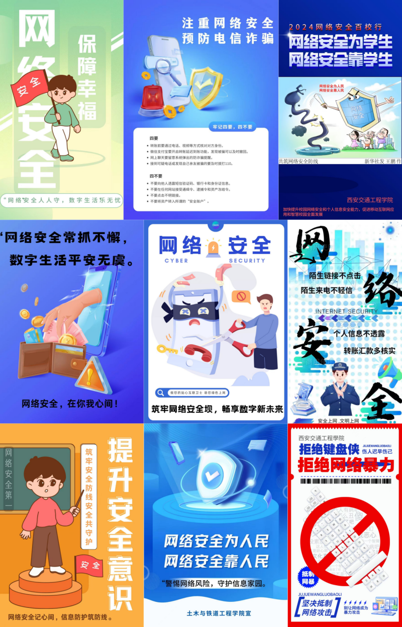 为深入贯彻习近平总书记关于网络强国的重要思想,加强网络安全宣传教育,增强师生网络安全意识,土木与铁道工程学院在国家网络宣传周期间围绕“网络安全为人民 网络安全靠人民”主题开展系列活动,普及网络安全知识,增强师生网络安全意识,提升校园网络安全保障能力。