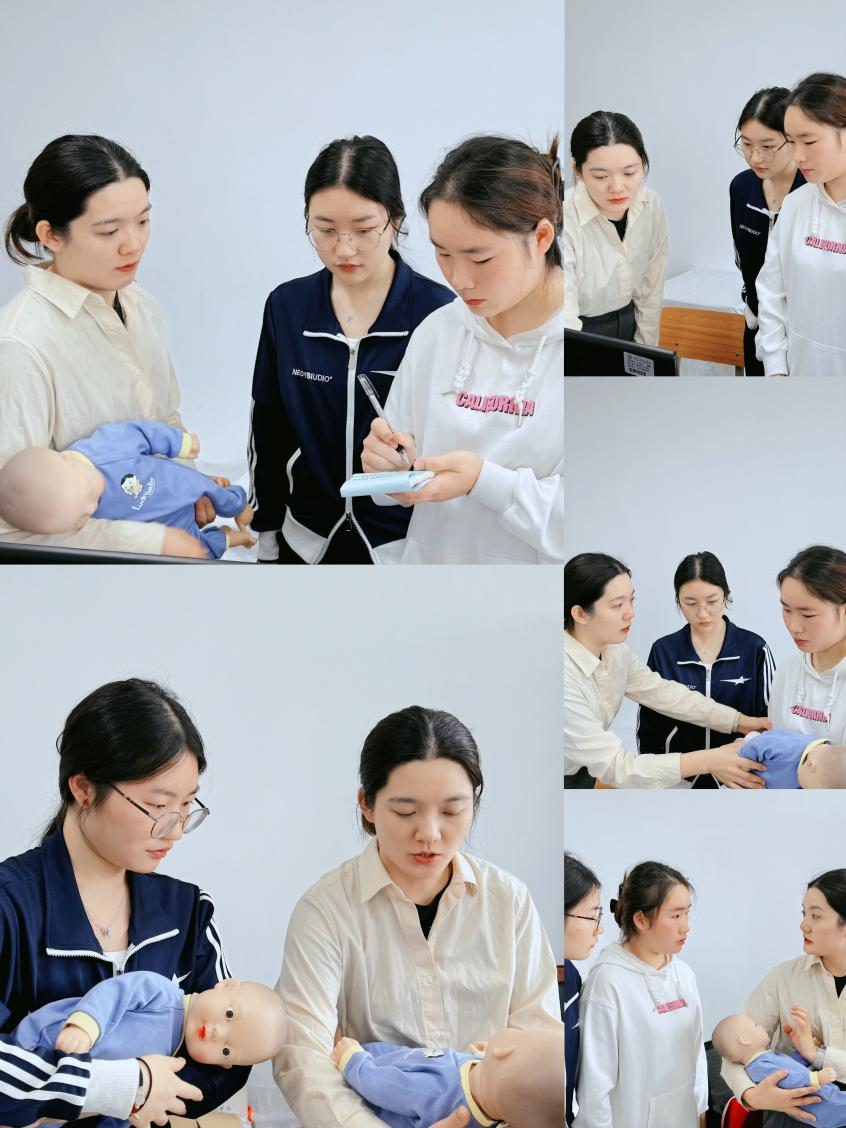 在实操指导环节,支琼雅检验了两名同学对0-1岁婴儿回应性照护技能的日常练习成果。针对照护过程中出现的问题,支琼雅从婴儿喂养、换尿布、拍嗝、安抚等基本技巧,到肠绞痛的处理和日常保健护理等各个方面都进行了全面而细致的指导。她不仅针对两名同学存在的共性问题进行了统一讲解,还根据她们各自的个性问题进行了针对性的辅导。