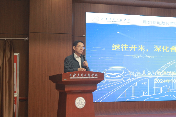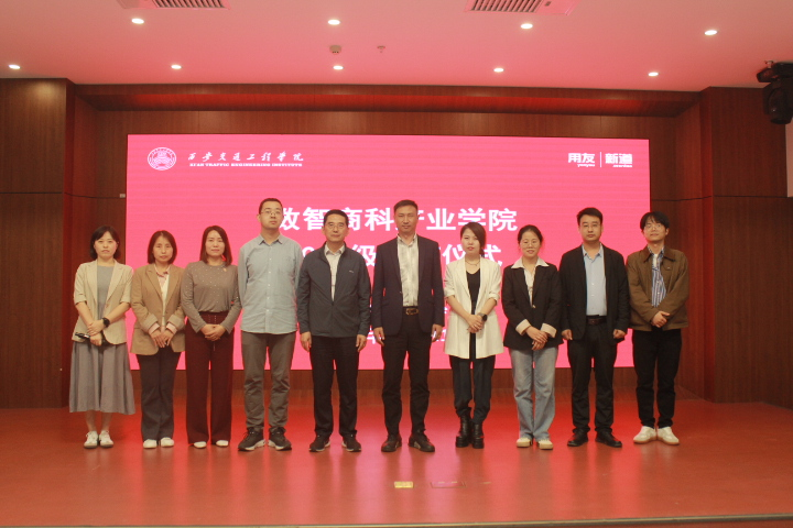 10月11日,数智商科产业学院在集贤楼二楼隆重举行2024级开班仪式。新道科技股份有限公司西北大区总经理孙胜儒、用友网络科技股份有限公司陕西分公司高级顾问王海涛、新道科技股份有限公司陕西分公司服务总监卢小亚、销售经理贾盛康、驻校导师吴活波。beat365人文与管理学院院长赵德利教授、财务管理基础课教研室主任李海翔老师、副主任周芝情老师、财务管理核心课教研室副主任罗沙沙老师和全体2024级学生参加了开班仪式。开班仪式由财务管理核心课教研室主任齐欢欢主持。