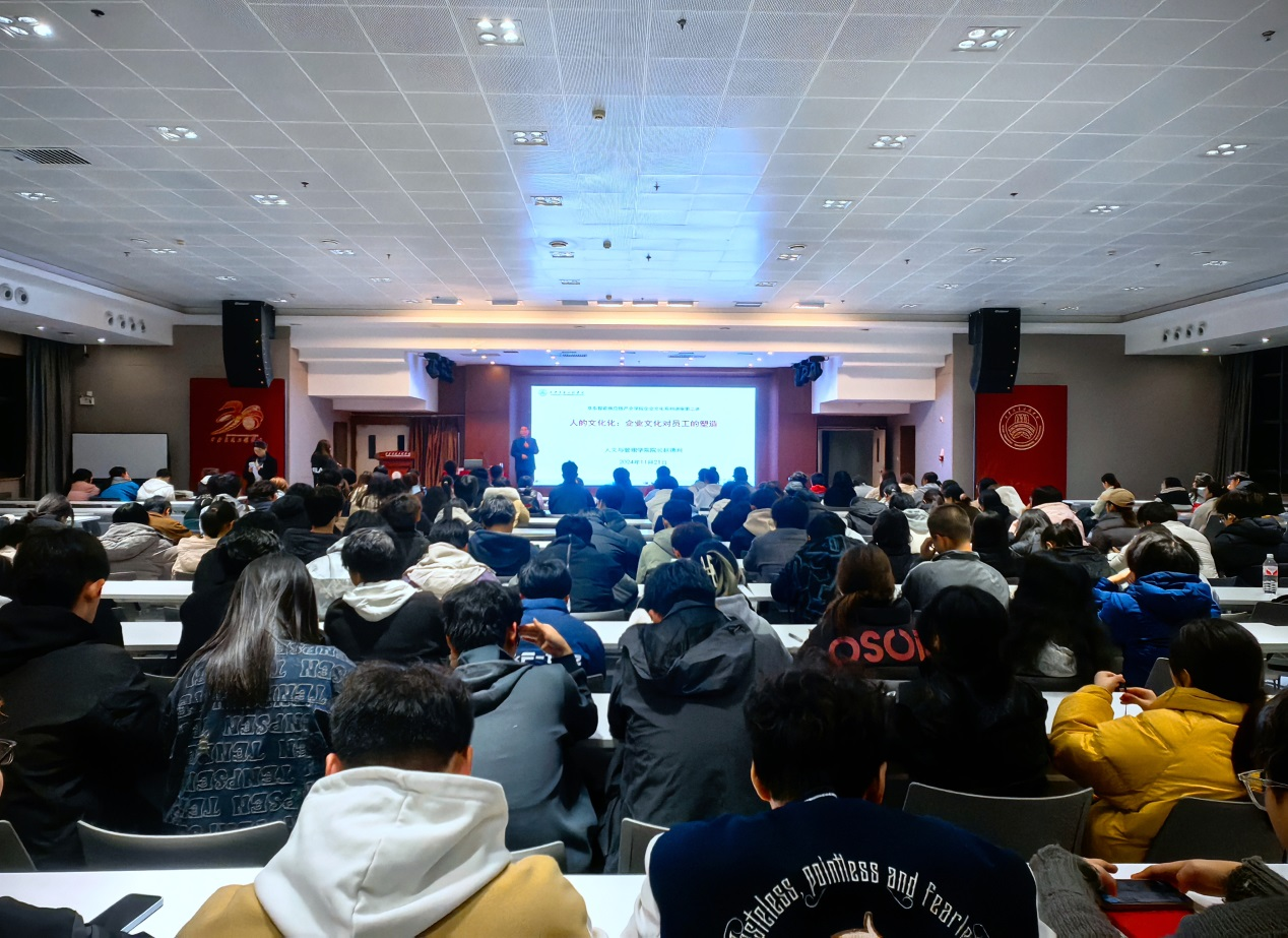 按照人文与管理学院对产业学院一年级学生素质拓展的讲授计划,11月21日晚上,京东智能供应链产业学院在集贤楼二楼报告厅成功举办企业文化系列讲座第二讲——企业文化对员工的塑造。本次讲座由人文与管理学院院长赵德利教授主讲,人文与管理学院2024级物流管理与电子商务专业(包含专升本)学生参加了报告会。