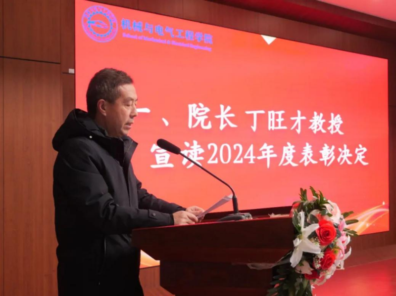 为进一步提高创新型人才培养,推动学生实践能力与综合素质全面发展,12月25日,机械与电气工程学院在集贤楼报告厅隆重举行2024年度大学生学科竞赛暨创新实践项目优秀表彰大会。副校长吴伟、石广田出席会议,教务处副处长齐军营,教学质量监控与评估处副处长李妍,机械与电气工程学院院长丁旺才,党委书记王拓辉,副院长周婷及学院各部门负责人,专业教师代表和学生代表共200余人参加会议。大会由机械与电气工程学院副院长任小文主持。