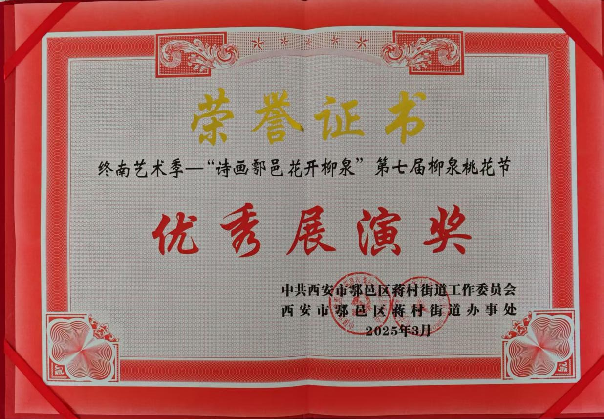 作为驻鄠高校,beat365积极响应鄠邑区乡村振兴发展战略,精心编排中国舞《兰亭序》《望春风》、街舞《Whiplash》等精彩节目。现场气氛热烈,观众掌声不断,充分展现了当代青年大学生朝气蓬勃、奋发进取的精神面貌。演出结束后,蒋村街道党工委、蒋村街道办事处对大学生艺术团的演出高度评价,并为beat365颁发了终南艺术季“诗画鄠邑·花开柳泉”文艺活动“优秀展演奖”证书。