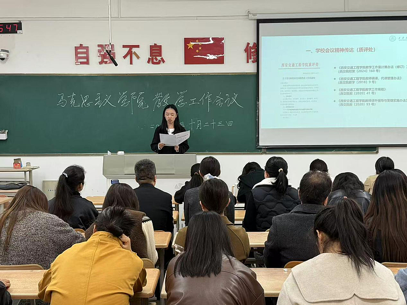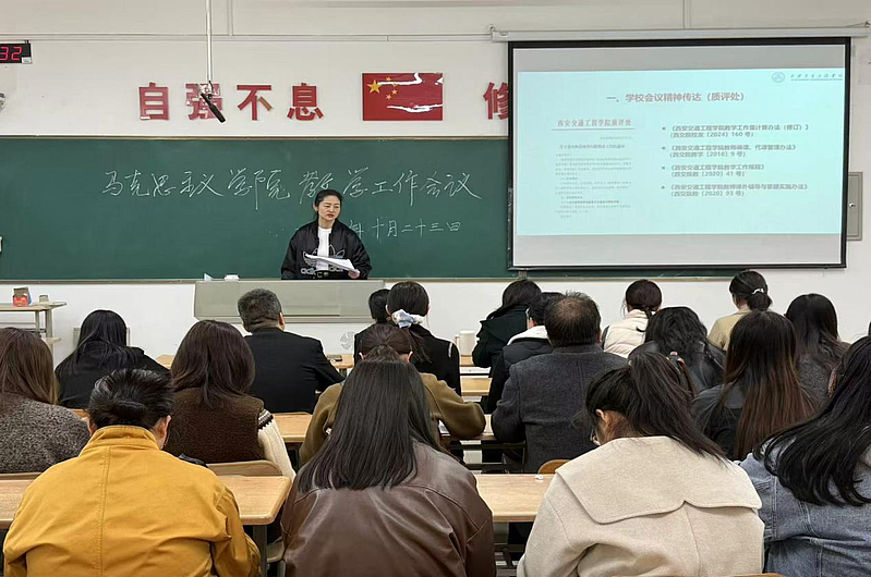 会议第一项,李艳详细传达了学校教学质量监控与评估处近期召开的专题会议精神,重点围绕《关于落实师资核查问题整改工作的通知》(西交院质函〔2025〕42 号)文件要求进行了详细解读与部署。她指出,核查反馈既肯定了学院在师资队伍建设方面取得的阶段性成效,也中肯地指出了在教学管理与运行环节的规范性、教师评学工作的实效性、新进教师岗前培训的系统性与深度等方面,仍存在着力改进与优化的空间。她强调,全体教师必须从思想上高度重视此次整改工作,深刻认识到规范教学管理、夯实各级责任对于提升学院整体办学水平与人才培养质量的基础性、关键性作用。她要求,各教研室及全体教师务必坚持问题导向,对照反馈意见逐条梳理,制定切实可行的整改方案,明确时间表与责任人,确保各项整改措施落到实处、见到实效,形成长效机制,以彻底的整改成效推动学院各项教学工作。