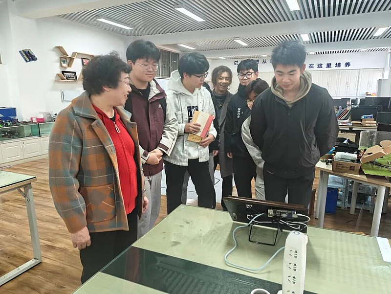 在教师带领下,成员近距离观摩音频/图像信号传输系统、语音控制智能车、摇杆平衡机、魔方自动复原机器、农田自动浇灌机器等作品。对方团队现场演示了语音控制智能车的路径规划与魔方自动复原的快速求解流程,我院成员围绕硬件选型、算法优化、竞赛适配性展开讨论,并就备赛困惑进行针对性请教,收获颇丰。