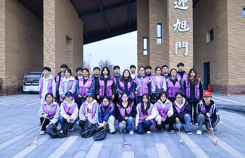 经过近3小时的忙碌,步道恢复整洁、草坪重现清爽,志愿者们的垃圾袋也“收获满满”。活动尾声,大家在“迎旭门”前合影留念,紫色马甲与身后的景致、建筑相映成趣,定格下青春服务社会的温暖瞬间。此次志愿行动不仅让公园环境得到改善,更让大学生们在实践中深化了生态保护意识。接下来,这支“紫马甲志愿队”还将走进社区、河道开展更多环保活动,让青春力量持续扮靓城市角落。