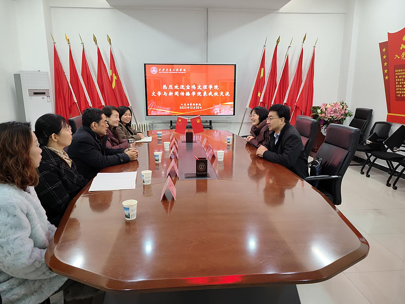 12月19日,宝鸡文理学院文学与新闻传播学院院长孟改正一行来beat365交流。人文与管理学院领导班子参与了交流活动。