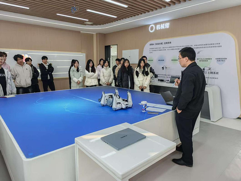 王老师深入剖析了小车的构造精髓——模块化设计。核心板、各类传感器、执行机构均采用标准化接口。这种设计理念,正如同竞赛中对系统模块化和快速迭代能力的要求。学生可以便捷地连接摄像头拓展机器视觉能力、加装机械臂实现更复杂的任务执行、集成语音模块赋予人机交互功能。王老师强调:“模块化不仅降低了学习门槛,更重要的是培养了学生系统化思维和快速构建解决方案的能力,这正是‘以学促教’的核心目标之一,也是未来参与竞赛和未来工作的必备素养。” 通过现场演示不同模块的快速插拔与协同工作,其灵活性与扩展性令在场学生直观感受到了工程实践的魅力。