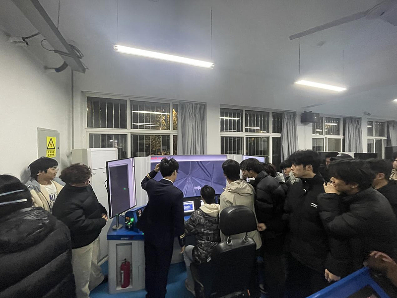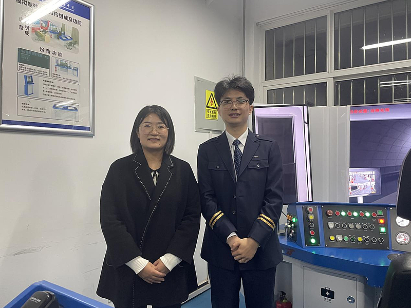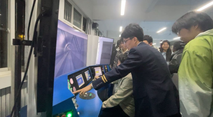 校友梁健鹏走进轨道交通模拟驾驶实训中心,为电车 2501 班及嘉兴铁投订单班学生开展手把手沉浸式实操教学。他摒弃理论灌输,以模拟驾驶舱设备为核心,示范讲解控制台操作、发车安检、速信匹配、精准停车等关键环节;指导学生分组实操,一对一纠正线路判断、刹车时机等问题,结合行业经历解答手柄力度把控、临时限速响应等提问,将抽象规范转化为直观经验。从午后到夜幕,全程精准指导让同学们直呼收获十足。
