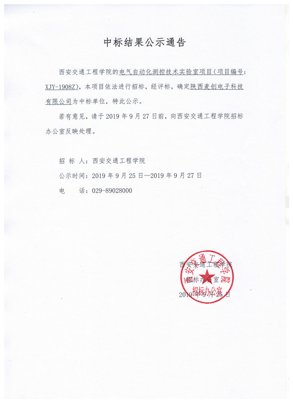 中标结果公示通知