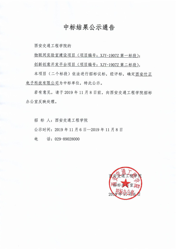 中标结果公示通知