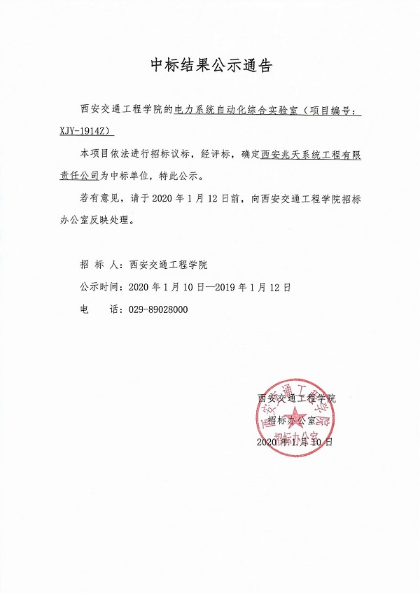 中标结果公示通告